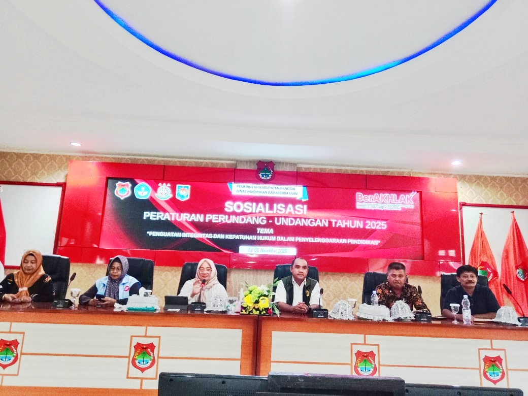 Banggai Cerdas Berbudaya — Dinas Pendidikan dan Kebudayaan (Disdikbud) Kabupaten Banggai menuntaskan rangkaian kegiatan Sosialisasi Perundang-undangan Tahun 2025 dengan tema “Penguatan Integritas dan Kepatuhan Hukum dalam Penyelenggaraan Pendidikan”. Kegiatan pamungkas digelar pada Sabtu (8/11/2025) di Ruang Rapat Umum Kantor Bupati Banggai, menandai berakhirnya rangkaian sosialisasi yang telah berlangsung sejak 24 Oktober.