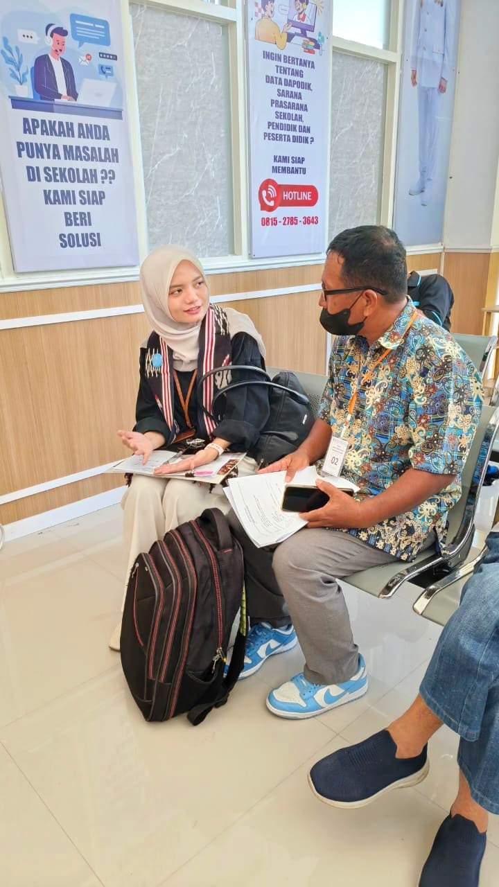 Sementara dua anggota tim lainnya melakukan wawancara terpisah dengan Kabid SMP, Kasubag Umum dan Kepegawaian, staf kepegawaian, serta masyarakat yang sedang mengurus layanan di kantor tersebut.