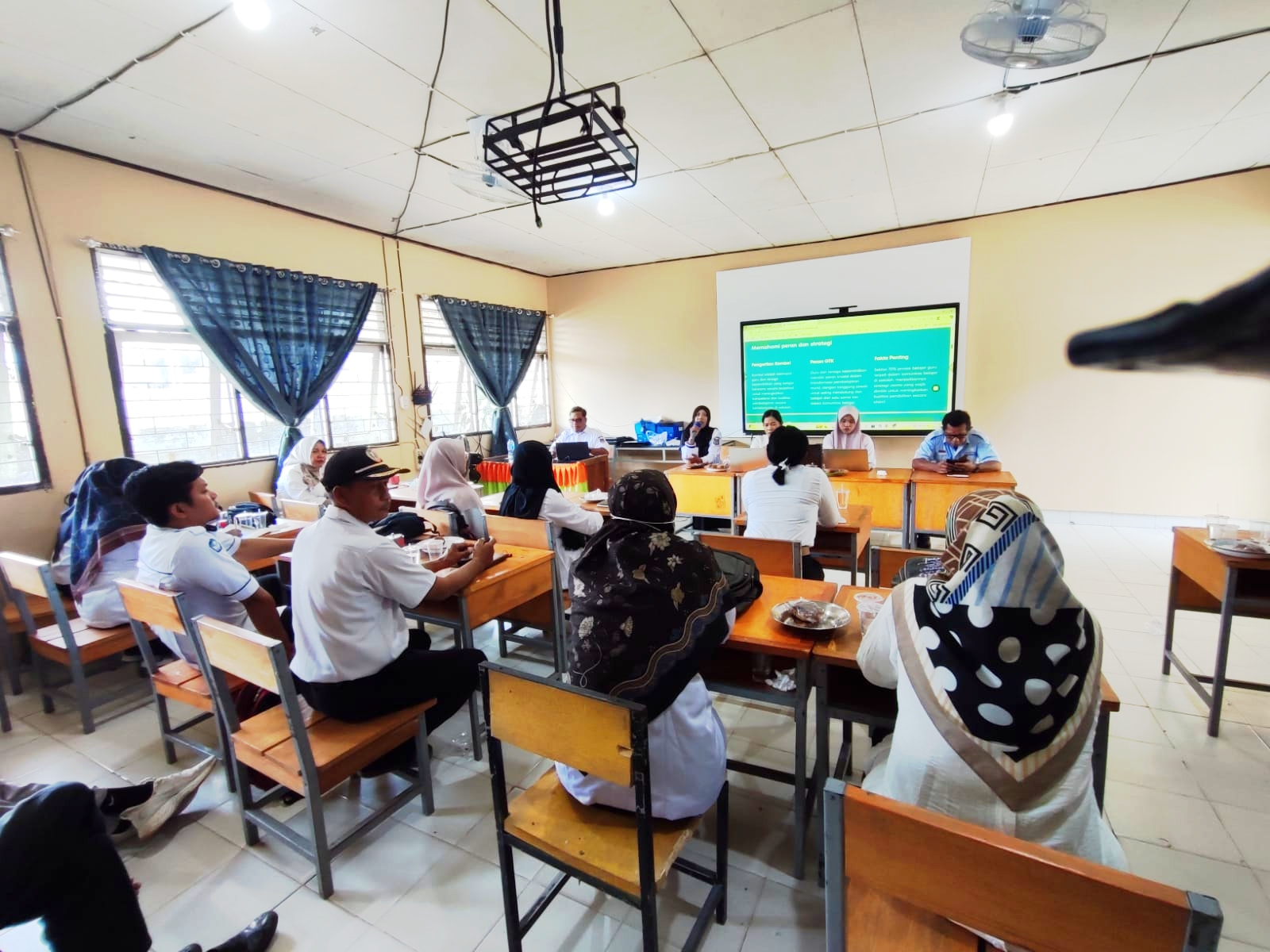 Kegiatan ini diawali dengan penyampaian materi konsep pembelajaran mendalam, disusul dengan sesi diskusi kelompok dan praktik perumusan model pembelajaran. Antusiasme peserta terlihat dari interaktifnya sesi tanya jawab serta berbagi pengalaman antar guru mengenai strategi pembelajaran berbasis projek yang sudah diterapkan di sekolah masing-masing.